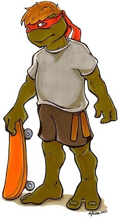 "Yeah dudes, it's pizza scarfing time!" Michaelangelo yelled as he excitedly ran through the back door and into the kitchen where Jeff and the others happily greeted him. Donatello and Raphael quickly followed while Leonardo trailed behind.
