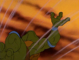 The remark brought on a severe case of the giggles from both Jeff and Raphael, which was enough to tick Leonardo off big time. The turtle tightened the tails of his mask and charged at his brother. Michaelangelo was sent flying into Raphael who went over like a domino.