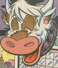 Just then Cudley the Cowlick showed up in the sky. "Greetings Turtles and... Mutanimals? Why I can't believe my eyes!"