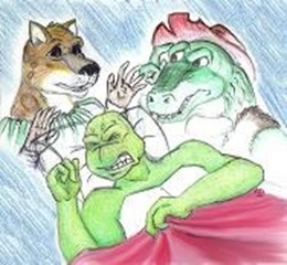 Kid and the Turtles couldn't believe their eyes as they saw what looked like a six foot tall figure with the hind legs of a horse, the body of a walrus, the arms of a lion and the head of a golden retriever.