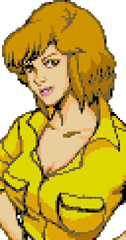 APRIL: "April O'Neil, former reporter for Channel 6 News. These are my close friends the Teenage Mutant Ninja Turtles."