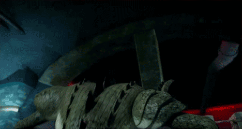 "Will you cool it?! I think I'm getting a reading!" Leonardo pointed the scanner into a very dark corner of the cave when out came a pair of glowing eyes.