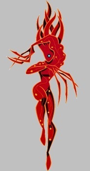 A feminine voice with a shrill cackle echoes through the room as a strange red creature made of pure energy appears.
