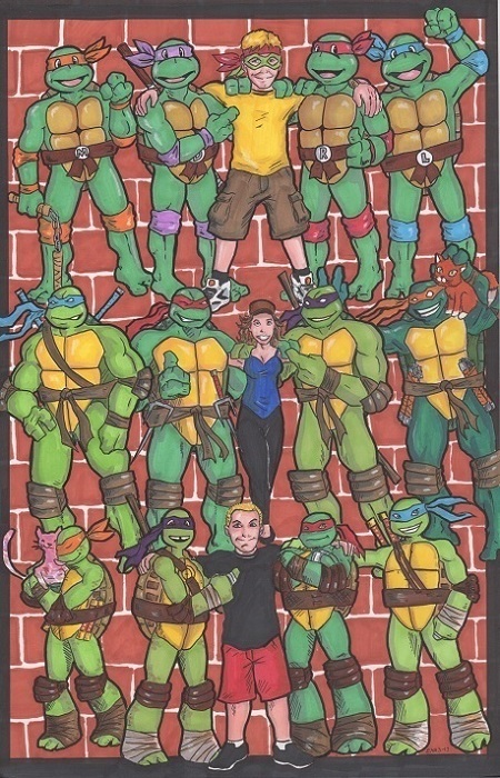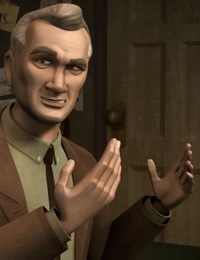 Raphael and 4Kids Raphael exchange a smirk over their respective leaders as Leonardo slices off the handle of the door, which 4Kids Leonardo opens and out comes a gray haired man with his hands tied behind his back and masking tape over his face. Donatello unties the man, while Jeff carefully removes the tape.