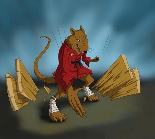 "Ohio Wassabi!!!" Splinter shouted as he cleaved a block of wood in half.